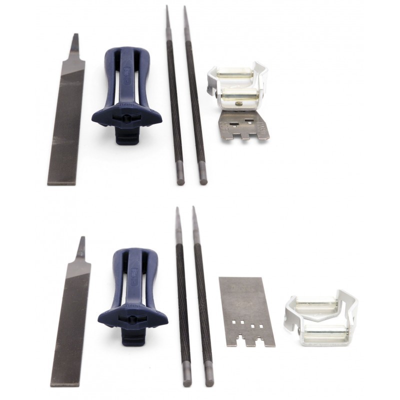 Kompletny zestaw do ostrzenia ułatwi utrzymanie łańcucha w dobrym stanie. Z odpowiednio zaostrzonym łańcuchem praca jest łatwiejsza i bezpieczniejsza. Zestaw zawiera uchwyt pilnika, prowadnik z przymiarem lub prowadnik pilnika z szablonem ograniczników, dwa okrągłe pilniki i jeden pilnik płaski.
