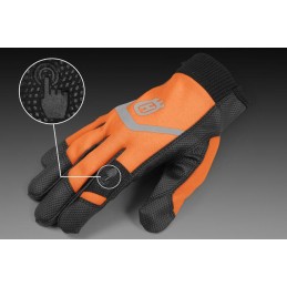 Wygodne rękawice ochronne przeznaczone do wszechstronnych prac ogrodniczych i leśnych. Wewnętrzna strona rękawicy zapewnia precyzyjne wyczucie i doskonały chwyt nawet w mokrych warunkach. Na palcu wskazującym znajduje się wstawka dostosowana do obsługi ekranu dotykowego, dzięki czemu możesz używać smartfona w rękawiczkach. Rękawice można prać ręcznie, a uporczywy brud, taki jak żywica - łatwo usunąć. Zgodne z normą EN 388: 2016. Dostępne w rozmiarach 7,8,9,12.